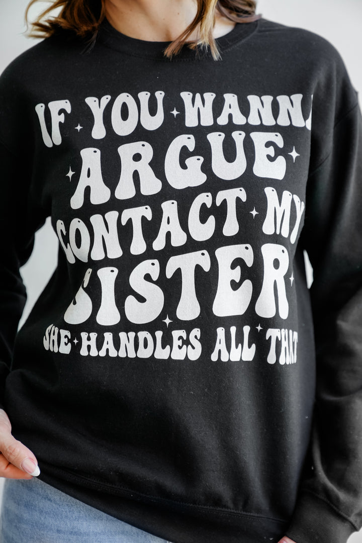 Plus/Reg Long Sleeve "Contact My Sister" Graphic Sweatshirt