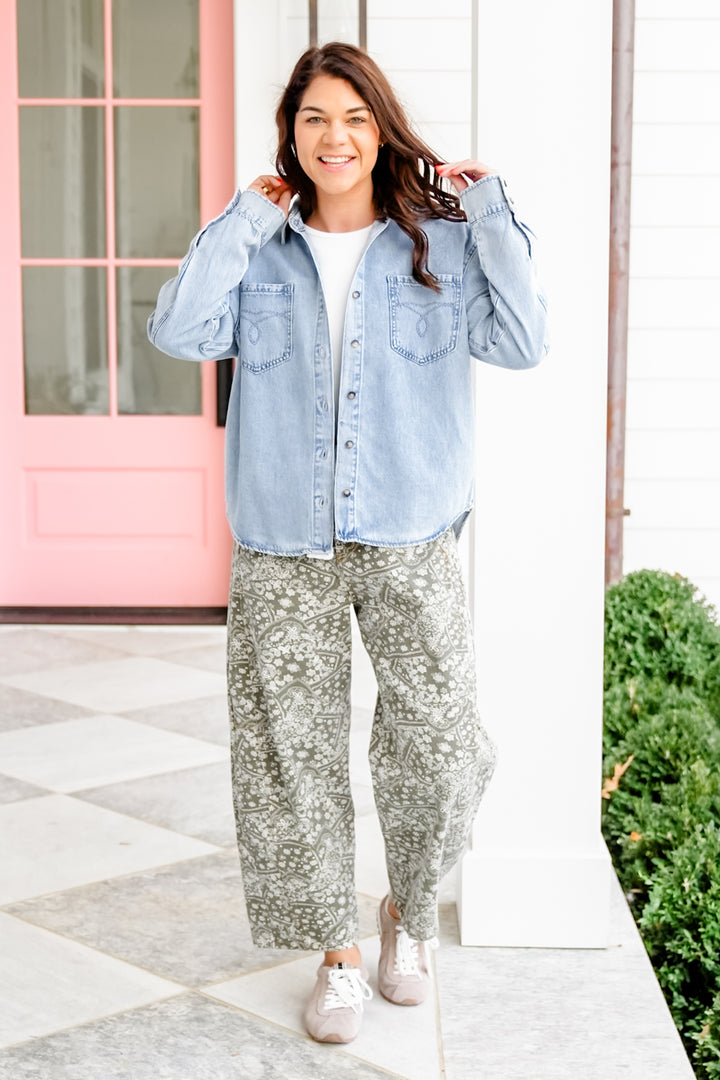 Plus/Reg Judy Blue Light Wash Long Sleeve Button Down Top