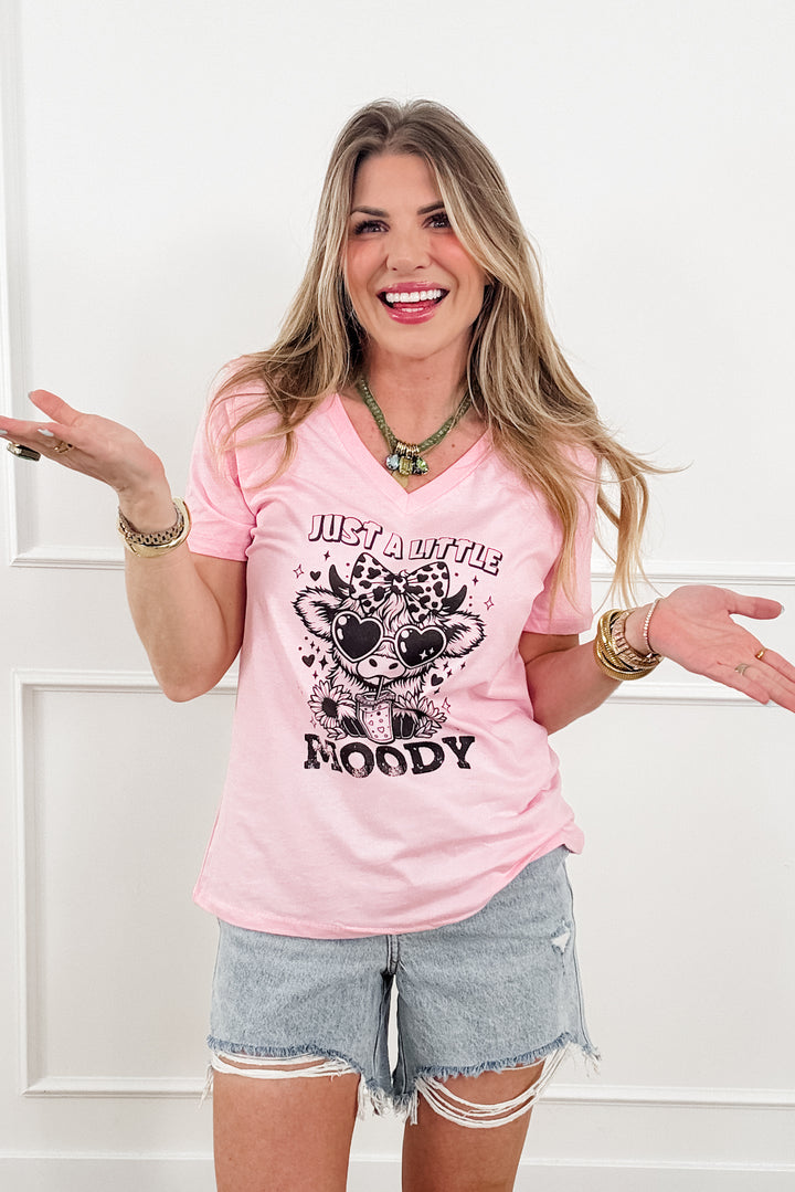 Plus/Reg Short Sleeve V Neck "Just A Little Moody" Graphic Tee