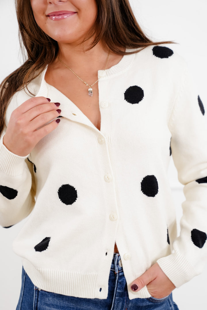 Polka Dot Print Long Sleeve Button Up Cardigan