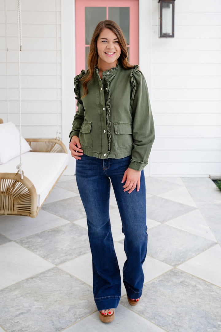 Restock! Veveret Olive Long Sleeve Ruffled Jacket