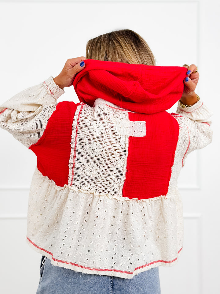 POL Crochet Long Sleeve V Neck Hoodie Top