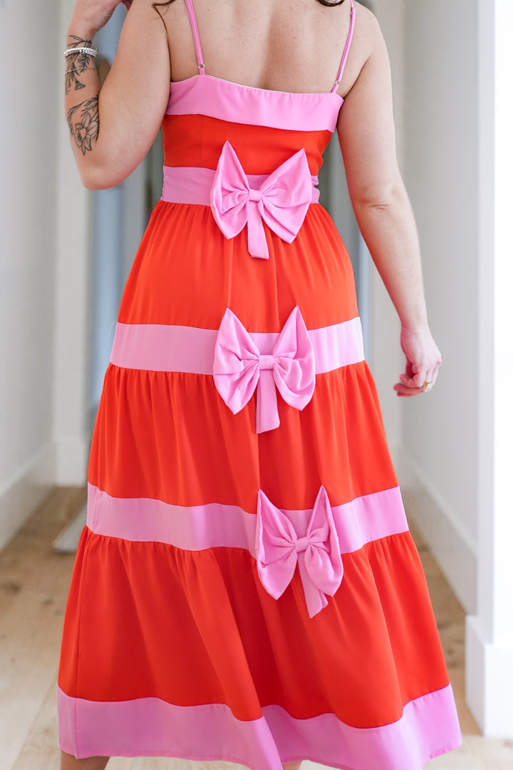 Solid Strapless Bubble Hem Midi Dress with Bow