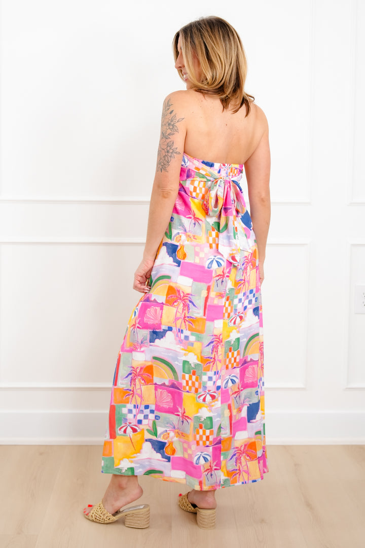 Tropical Vacation Print Sleeveless Maxi Dress with Tie Back