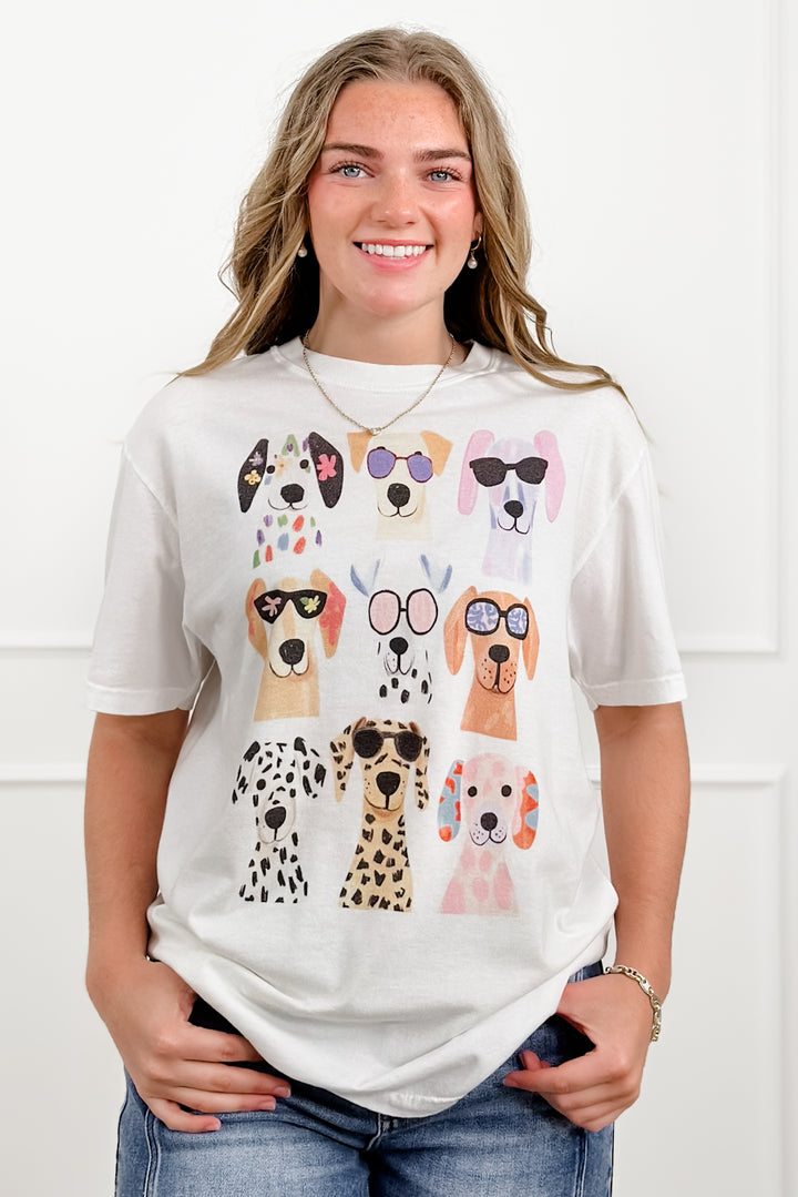 Plus/Reg Short Sleeve Dog Print Graphic Tee