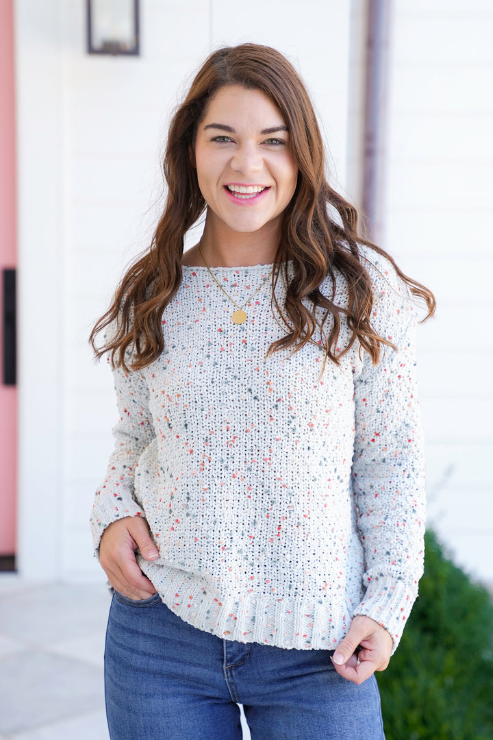 Popcorn Long Sleeve Boat Neck Pullover Sweater