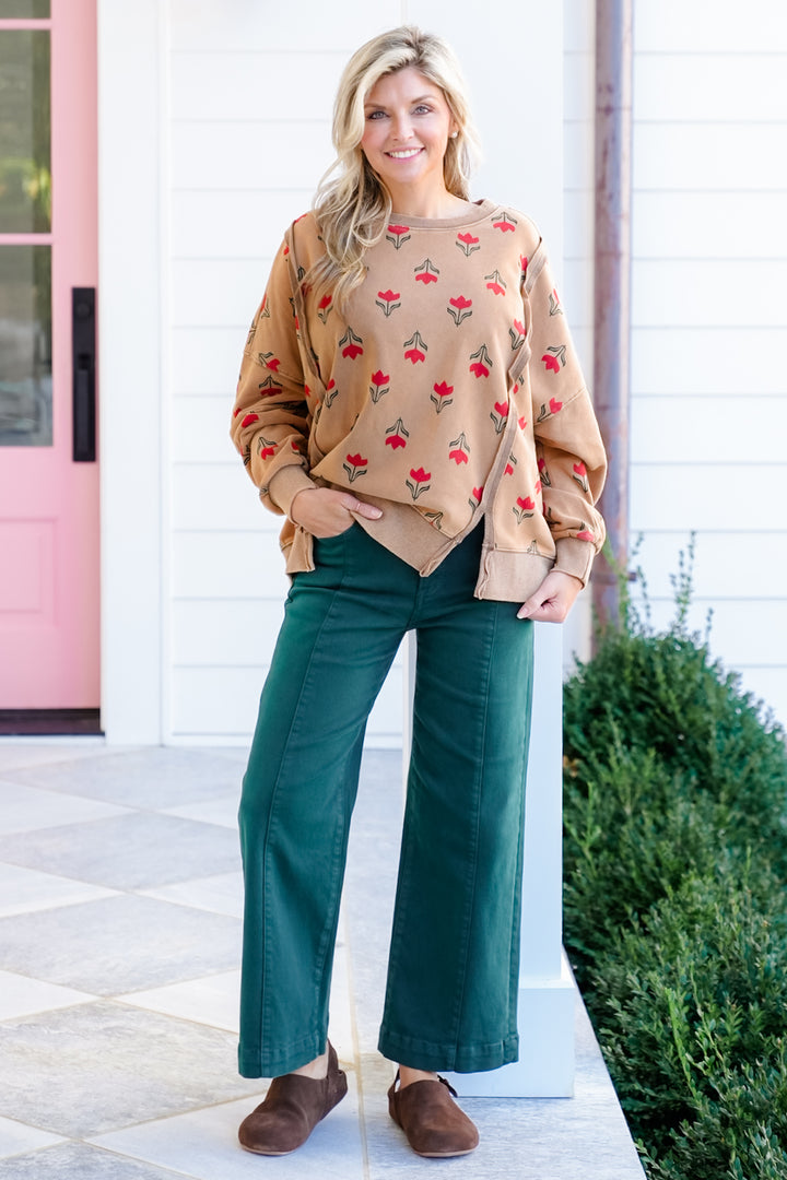 Floral Print Long Sleeve Pullover Top