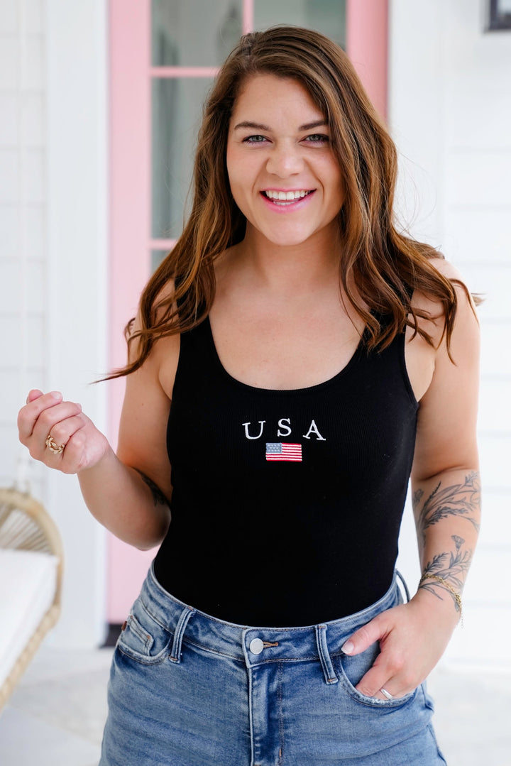 ON SALESleeveless U-Neck "USA" Bodysuit