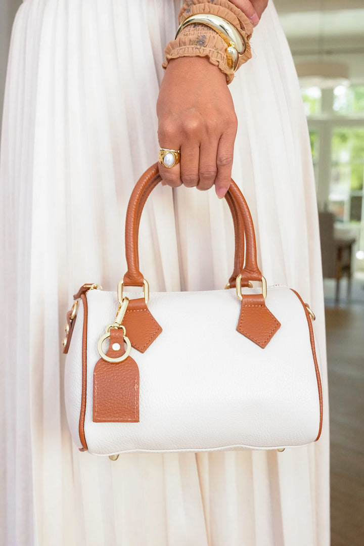 Genuine Italian Leather Handle and Crossbody Double Twist Lock Bag