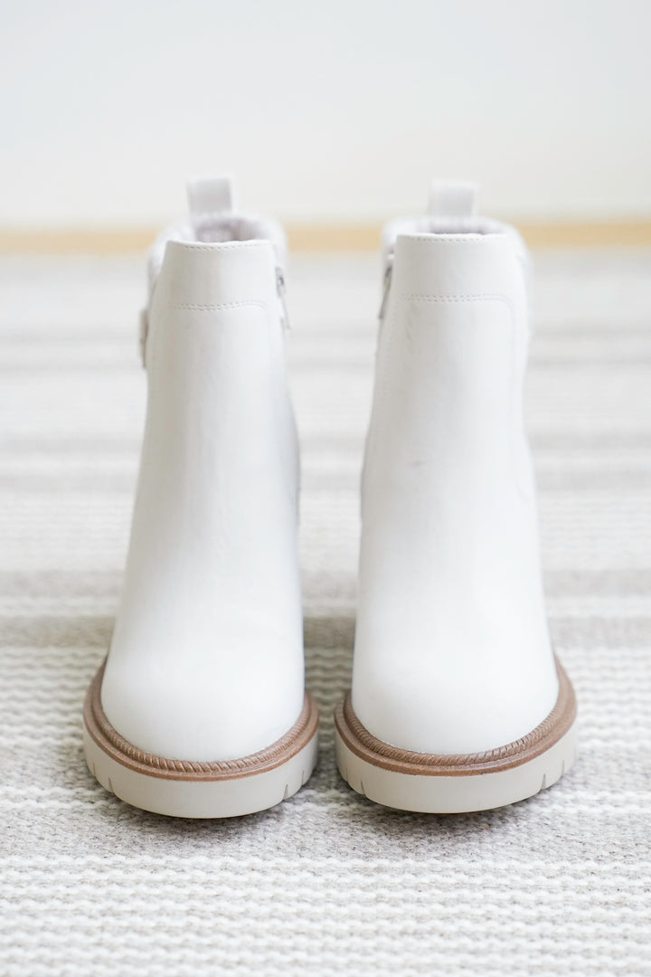 Soft Cow Leather & Elastic Sides Slip On White Chelsea Bootie With Heel