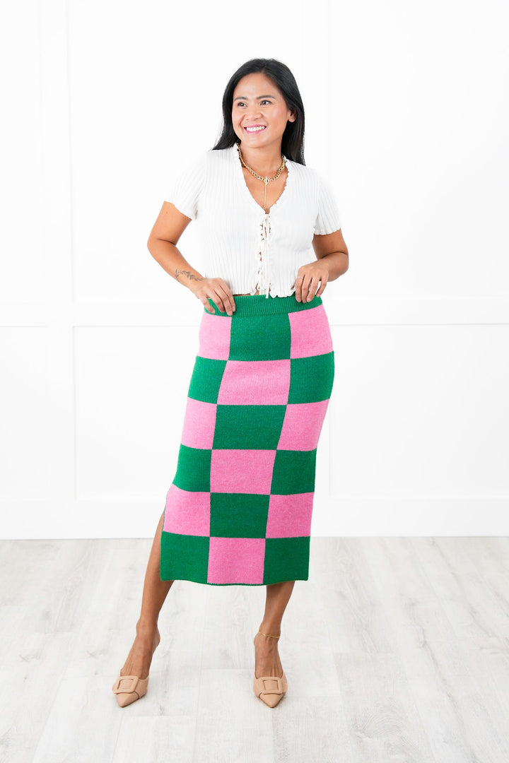 Restock! Plus/Reg Checkered Pencil Midi Sweater Skirt