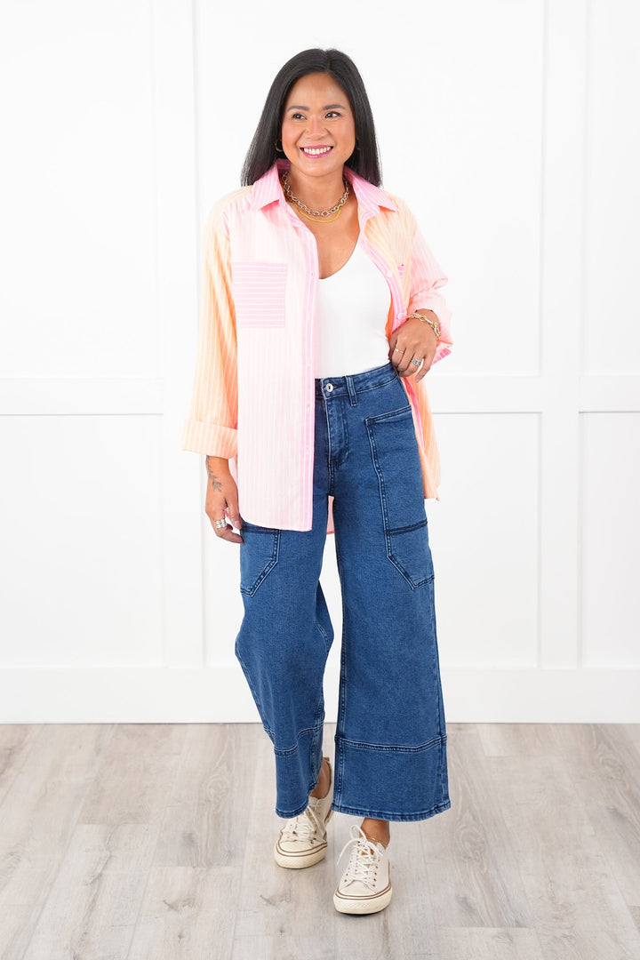 Special A High Rise Dark Wash Cropped Wide Leg Jeans with Extra Large Pockets