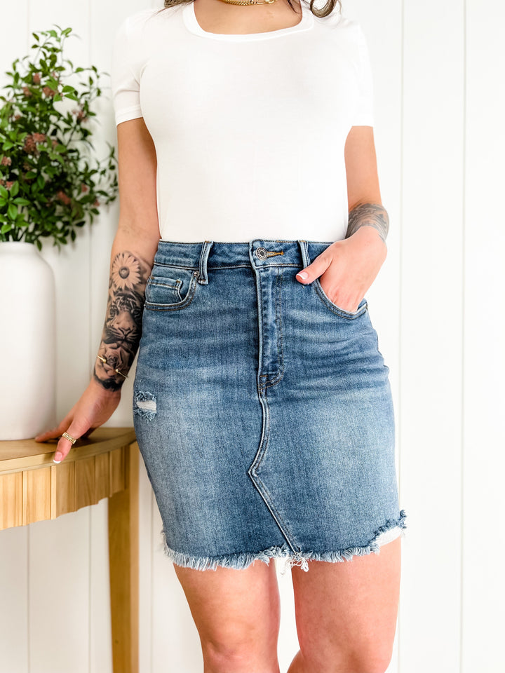 KanCan Medium Wash Skinny Jeans with Hem Detail