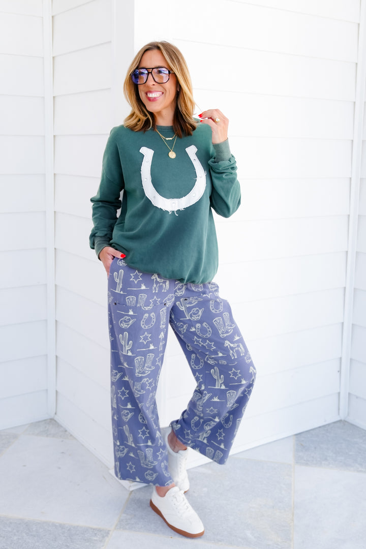 Western Print Pants with Patch Pockets