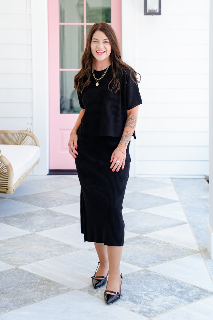 Ribbed Knit Short Sleeve Top and Skirt Set
