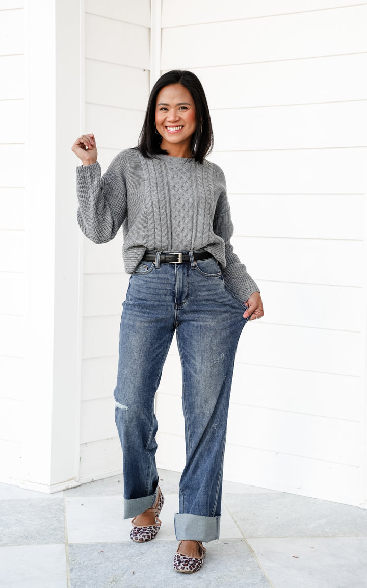 Judy Blue High Rise Medium Wash Destroyed Knee & Frayed Hem Straight Leg Jeans
