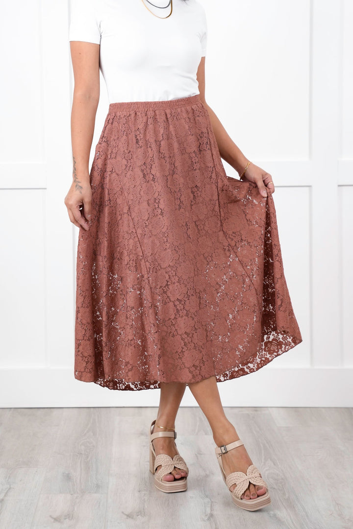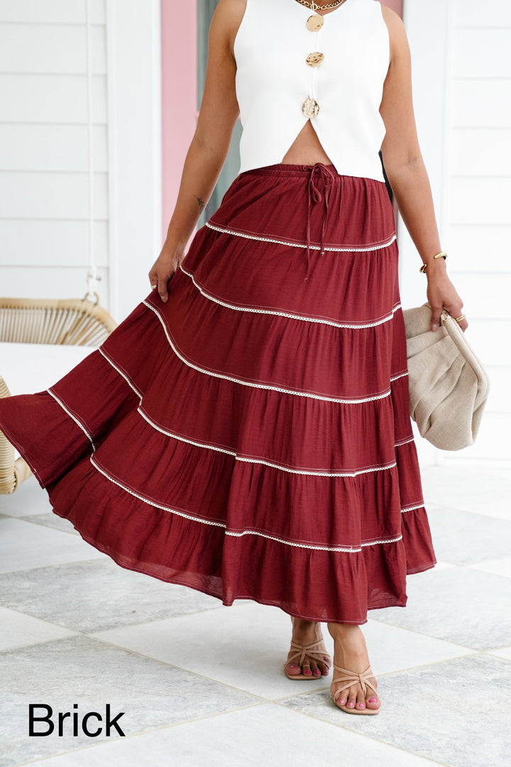 Elastic Waist Tiered Maxi Skirt with Crochet Trim Detail