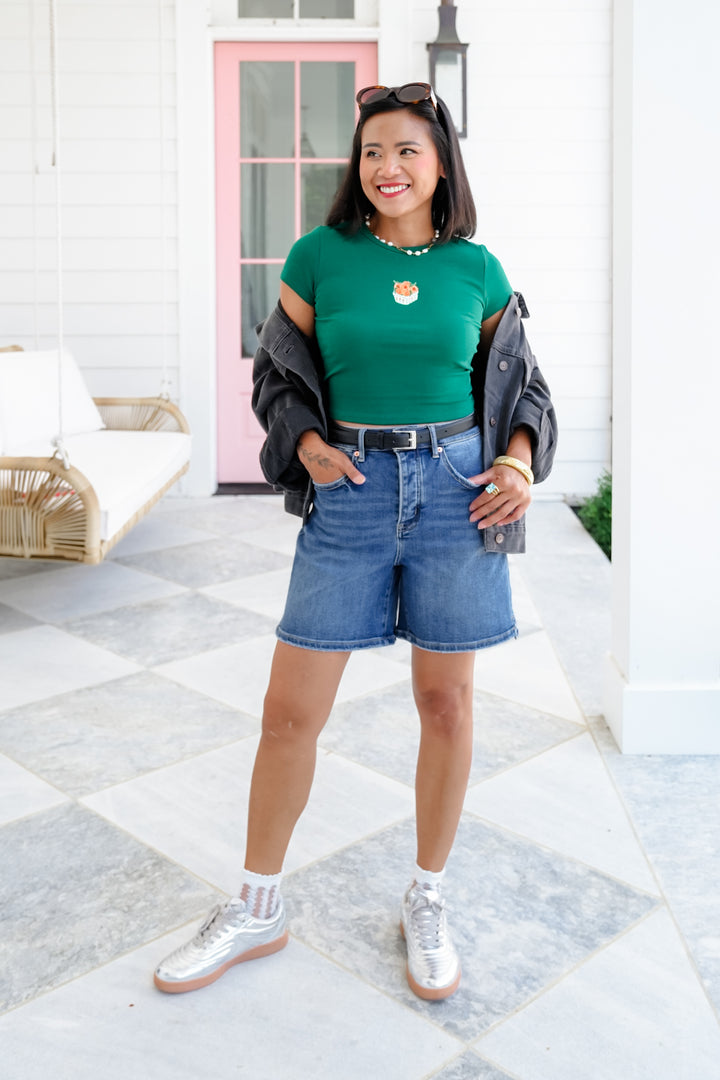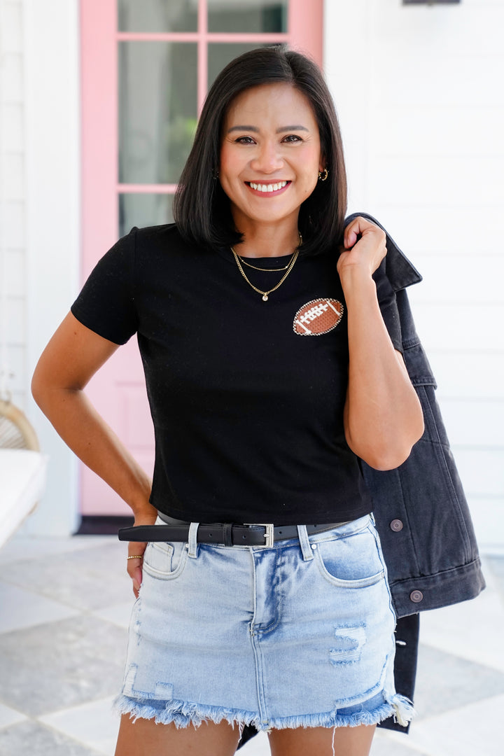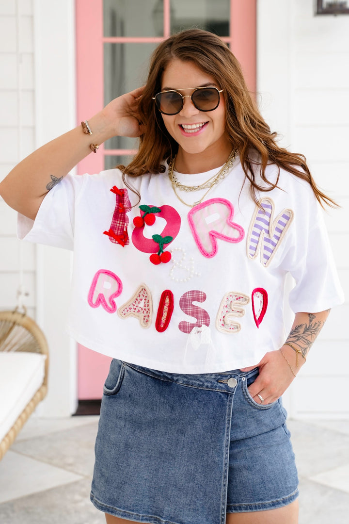 Short Sleeve "Born & Raised" Patchwork Crop Top