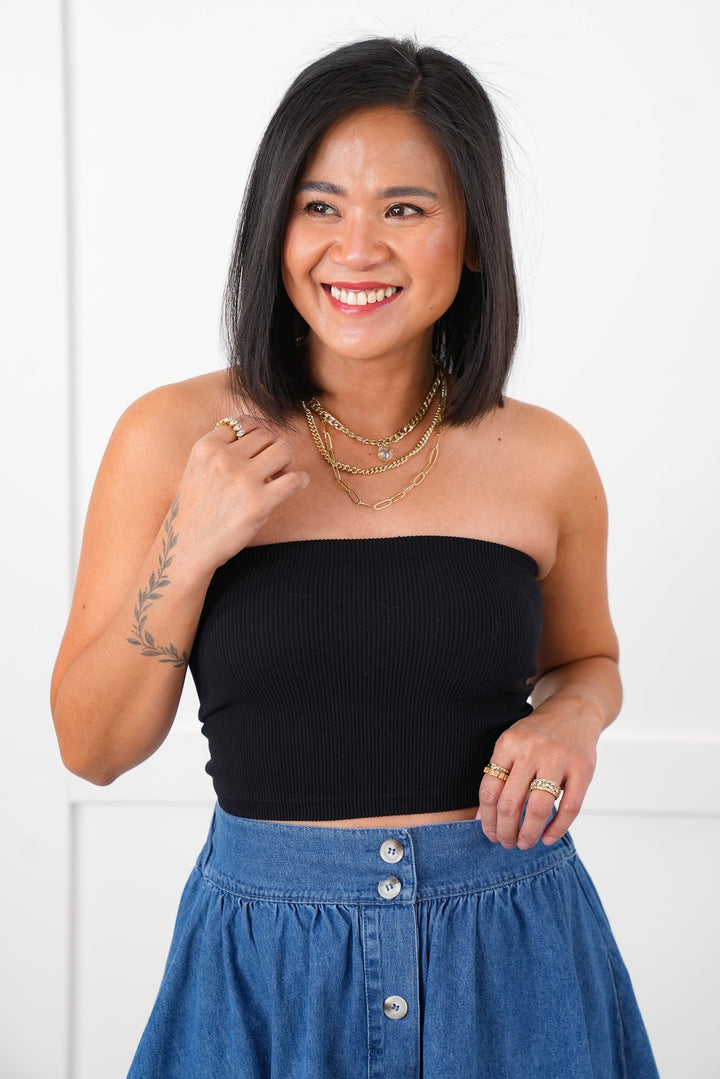 Ribbed Knit Cropped Tube Top with Non Slip Detail