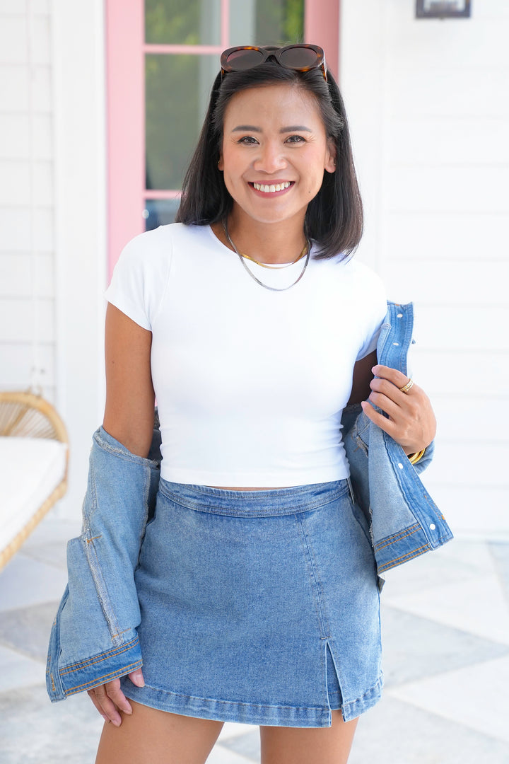 Restock! Solid Short Sleeve Round Neck Cropped Top