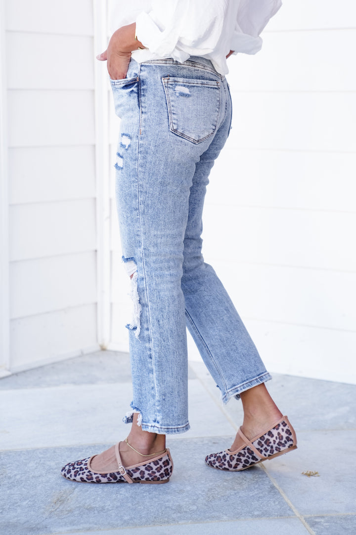 Lovervet Love at First Sight Mid Rise Acid Wash Cropped Straight Leg Jeans