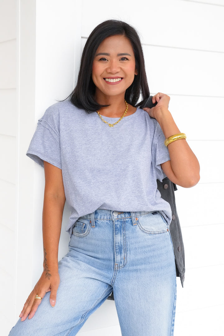 Door Buster! Solid Basic Raw Edge Short Sleeve Round Neck Tee