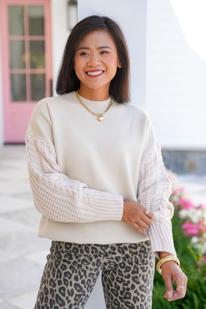 Door Buster! Zenana Cable Knit Sleeve Round Neck Sweater
