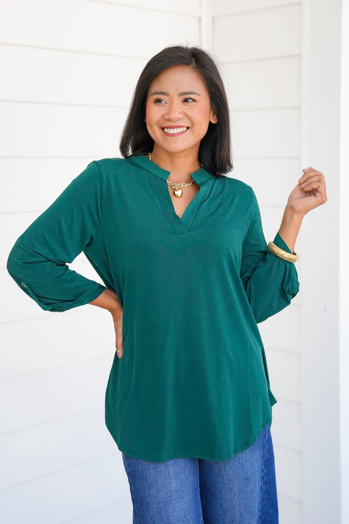 Door Buster! Plus/Reg 3/4 Sleeve Split Neck Tunic Top
