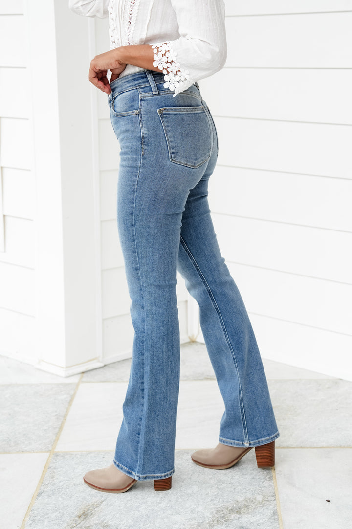 Judy Blue Effortlessly Chic High Rise Medium Vintage Wash Released Hem Kick Flare Jeans