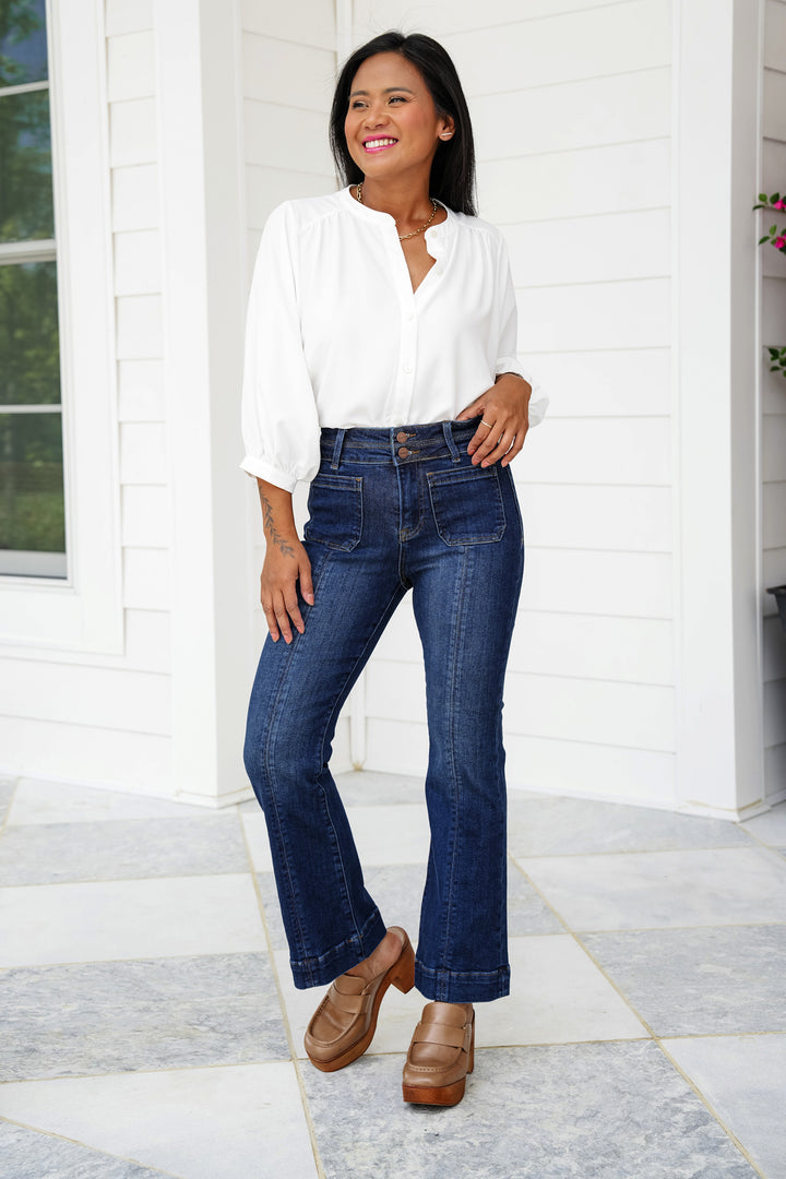 Judy Blue Belong To Me High Rise Dark Wash Angled Side Seam Flare Jeans