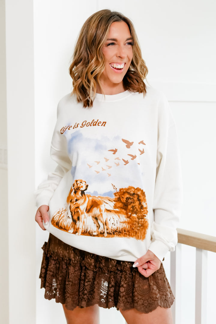 Long Sleeve "Life Is Golden" Graphic Pullover Sweatshirt