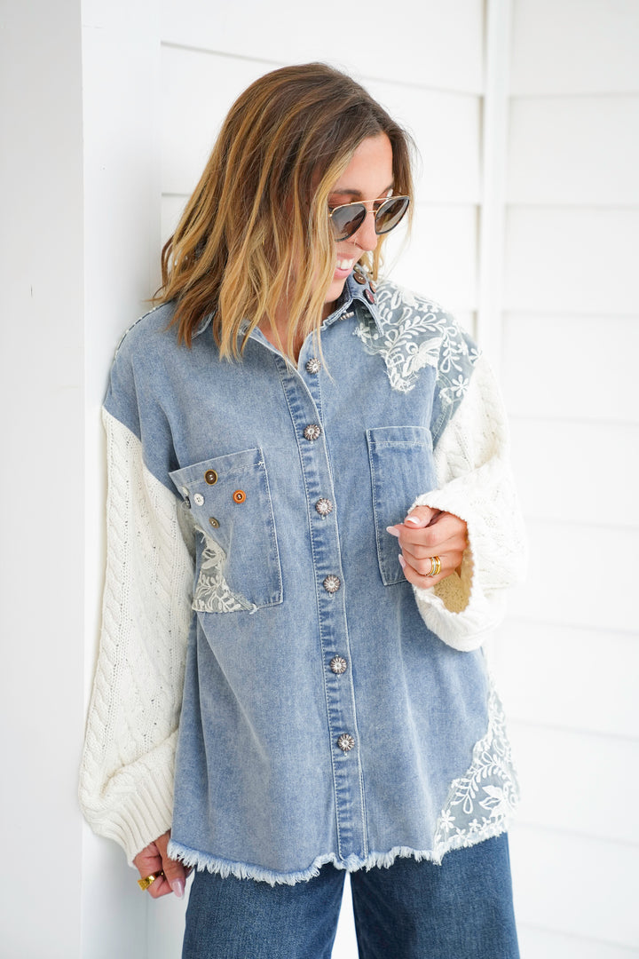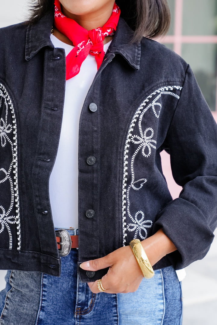 Embroidered Floral Long Sleeve Button Down Jacket