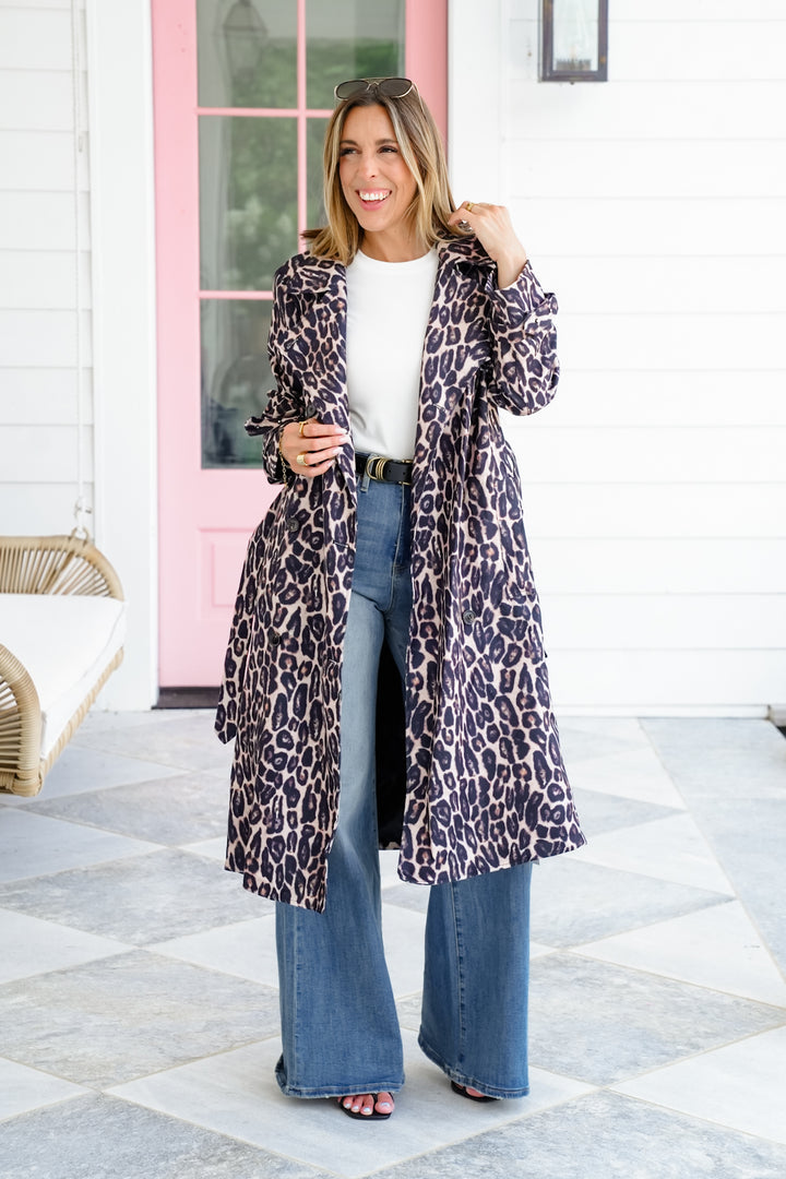 Leopard Print Double Breasted Trench Coat