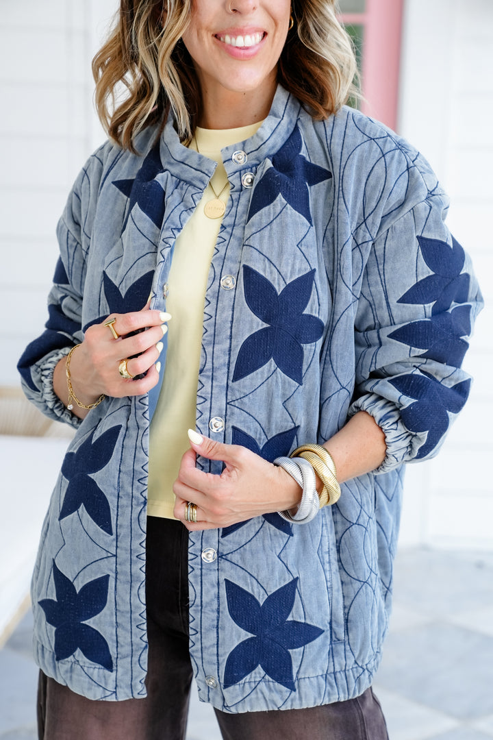 Celestial Embroidered Button Down Jacket