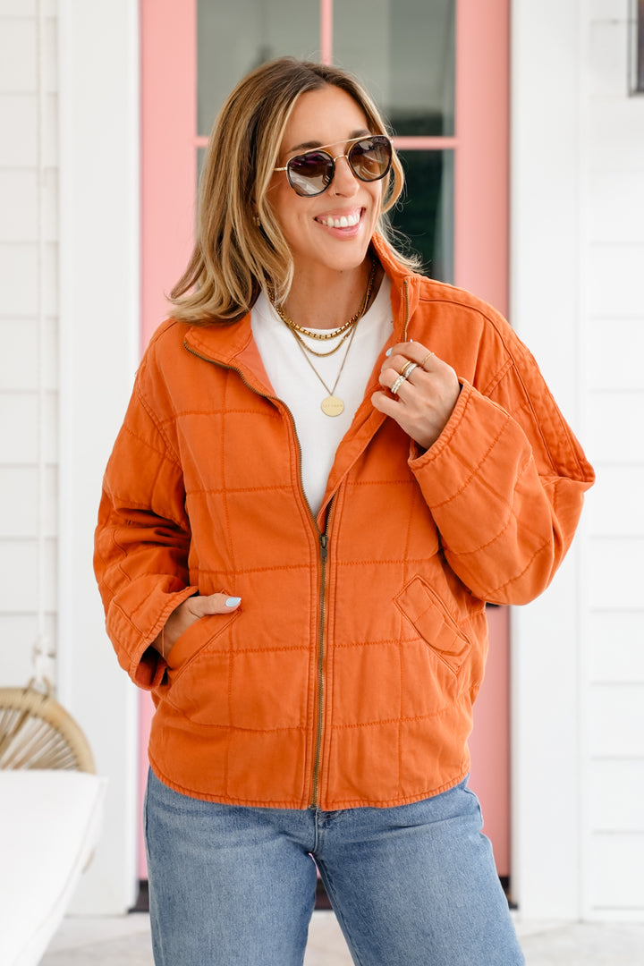 Washed Quilted Long Sleeve Zip-Up Jacket
