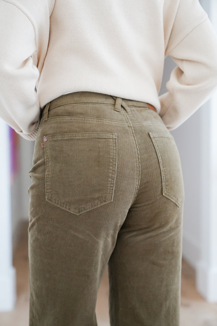 Judy Blue High Rise Olive Retro Wide Leg Corduroy Pants with Forward Side Seams