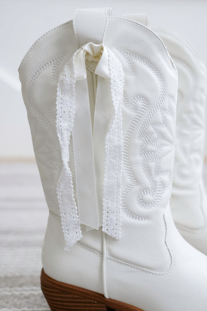 MIA Vegan Leather Western Boots with Embroidered Detailing and Ribbon Lace Accent