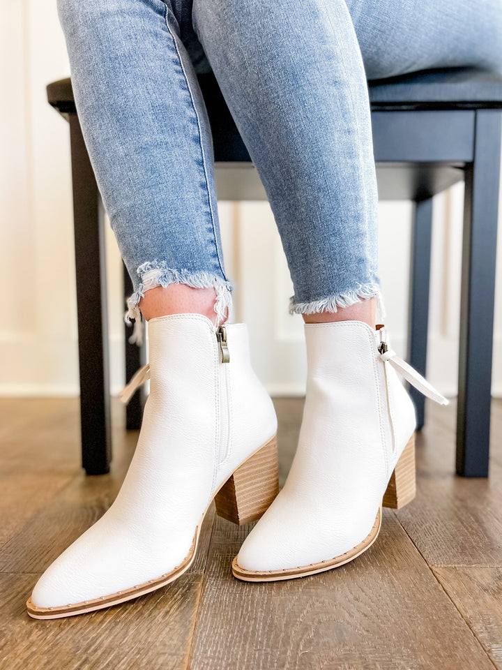 Rivet Chic Studded Tassel White Classic Casual Heeled Bootie