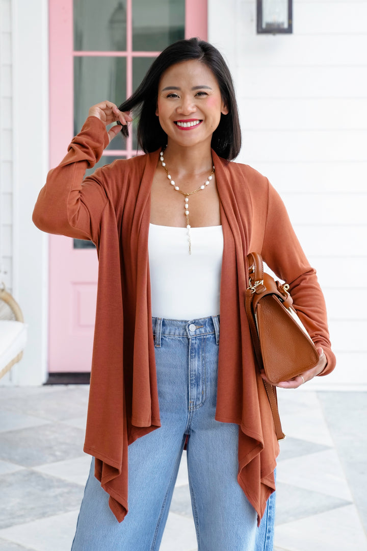 Plus/Reg Door Buster! Long Sleeve Cascading Open Front Cardigan