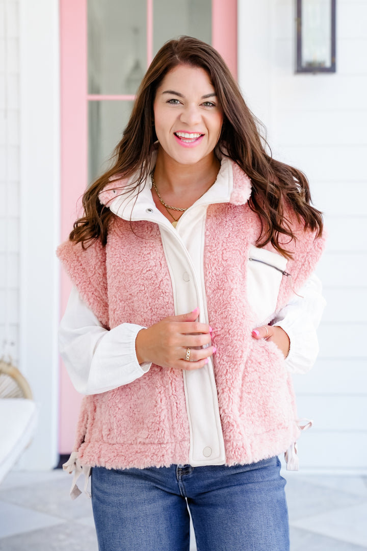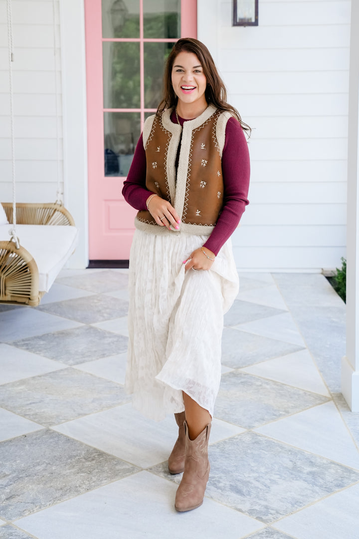 Vegan Suede And Sherpa Vest with Embroidery Detail