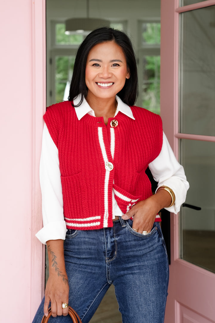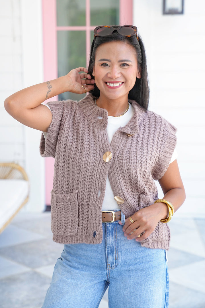 Chunky Knit Button Down Vest with Front Patch Pockets