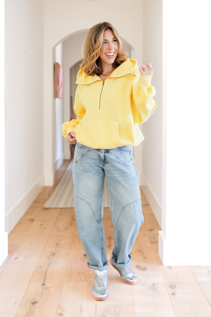Long Sleeve Half Zip Elastic Hem Hoodie