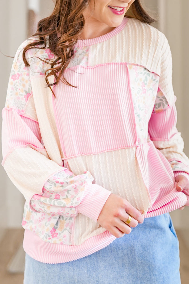Plus/Reg Patchwork Long Sleeve Pullover Knit Top