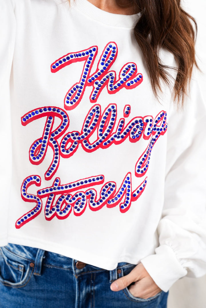 Rhinestone "The Rolling Stones" Long Sleeve Cropped Sweatshirt