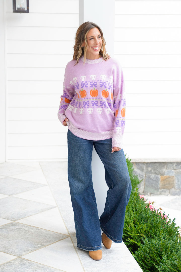 Long Sleeve Crew Neck Halloween Sweater with Bows