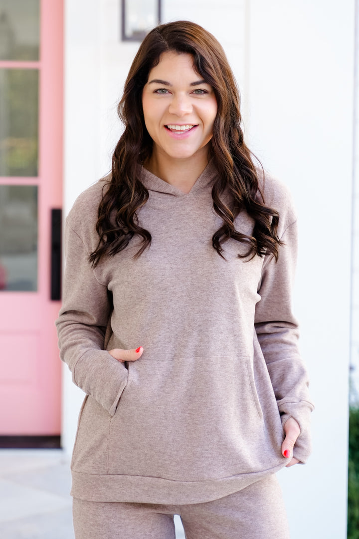 Plus/Reg Heathered Long Sleeve Pullover Hoodie