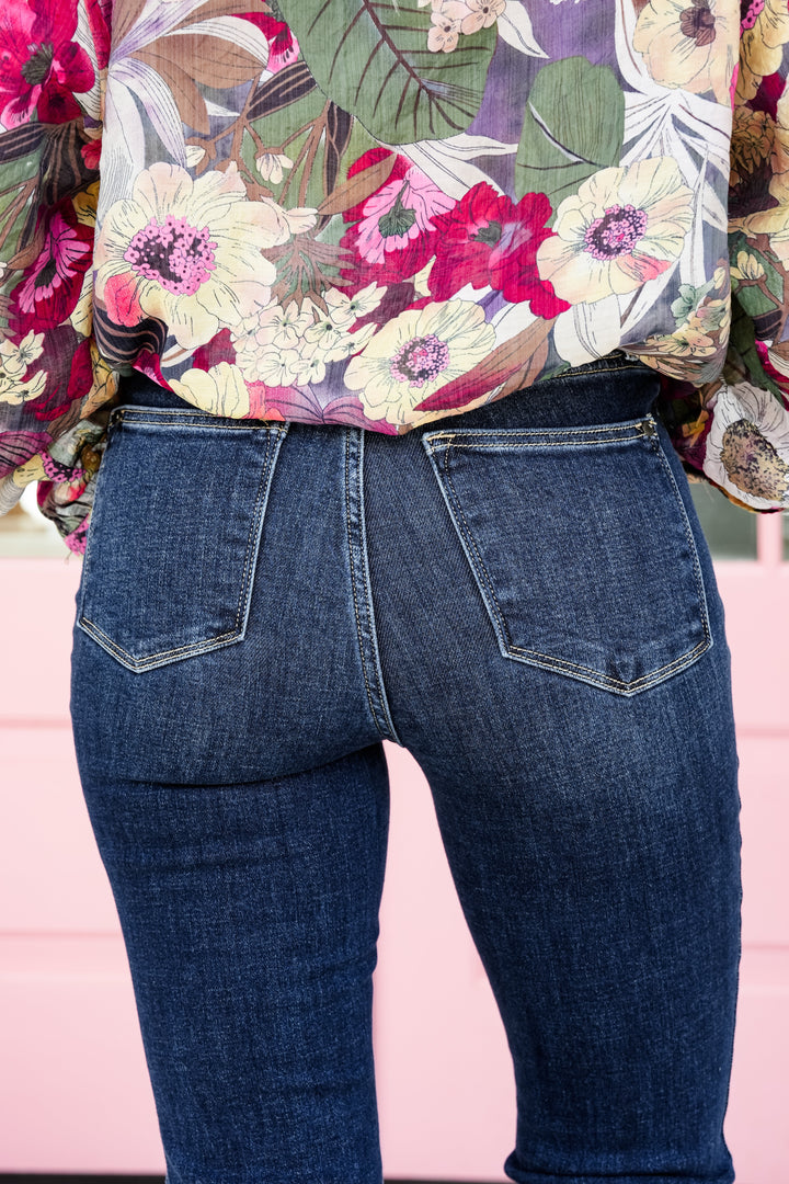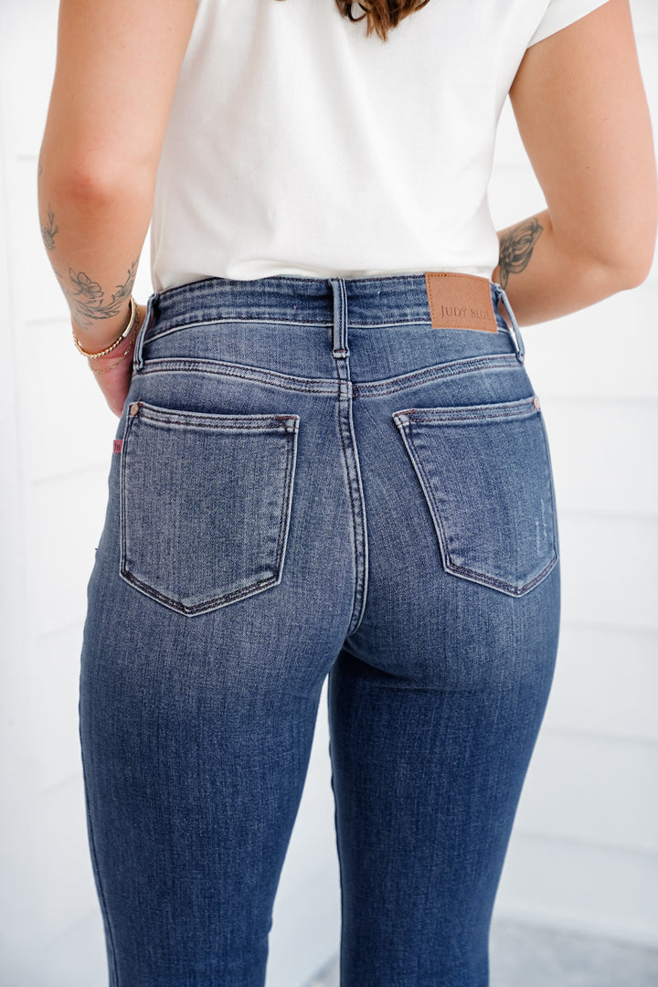Judy Blue Belong To Me High Rise Dark Wash Angled Side Seam Flare Jeans