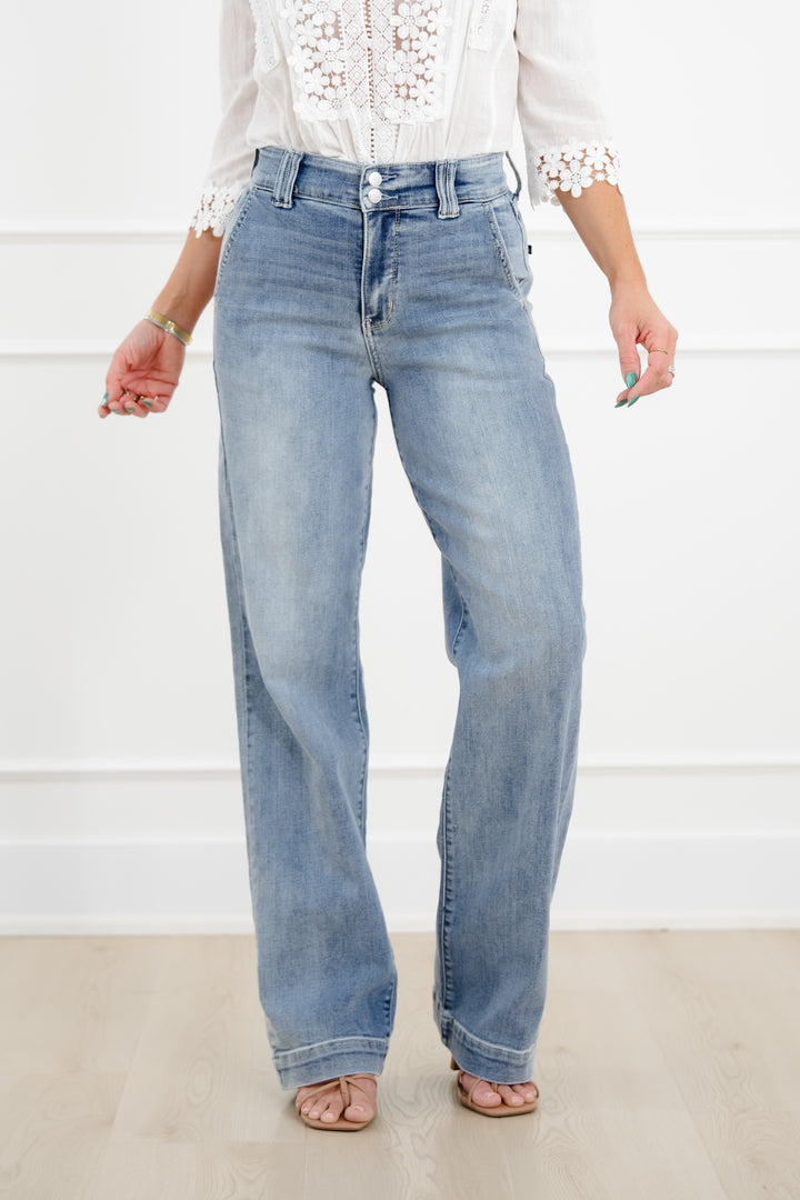 Judy Blue The Destiny High Rise Light Wash Multiple Inseam Wide Leg Trouser Jeans