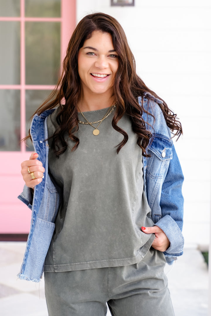 Mineral Wash Short Sleeve Tee with Side Slit Detail