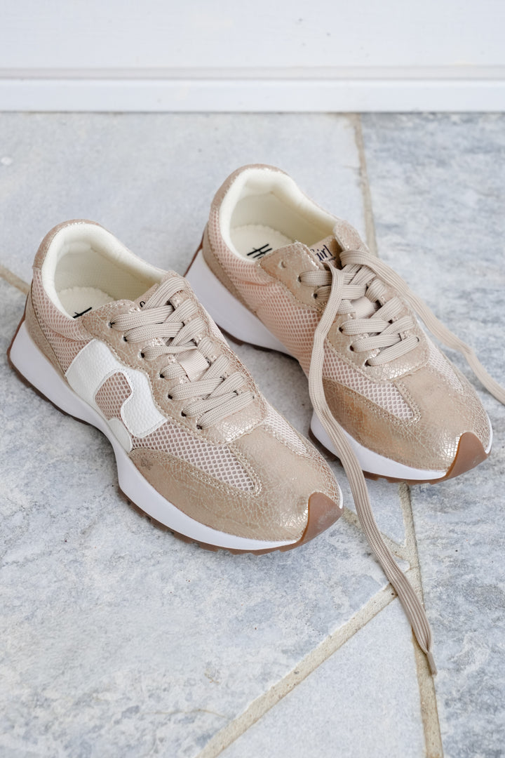 Corky's "No Prob" Cracked Metallic Mesh Vegan Leather Lace Up Sneaker